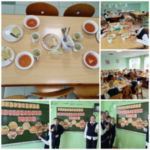 14 ноября в школе прошел день белорусской кухни. Целью дня была популяризация белорусской национальной кухни, формирование представления о здоровом питании, развитие творческих способностей и интереса к традициям. В рамках этого дня организована выставка рецептов блюд белорусской кухни. С учащимися 6 класса проведено мероприятие «Что ели наша предки?» н а старшеклассники прошли тест «Угадайте блюдо белорусской кухни». Также в меню школьников были предложены национальные блюда славянских народов: бабка картофельная со свининой , борщ с картофелем, огурец маринованный. После вкусного обеда ребята приняли активное участие в ежедневной акции «Поставь оценку блюду».Все это позволило повысить интерес и расширить представления детей о белорусской кухне, приобщить к национальным ценностям и культурным традициям своего народа.